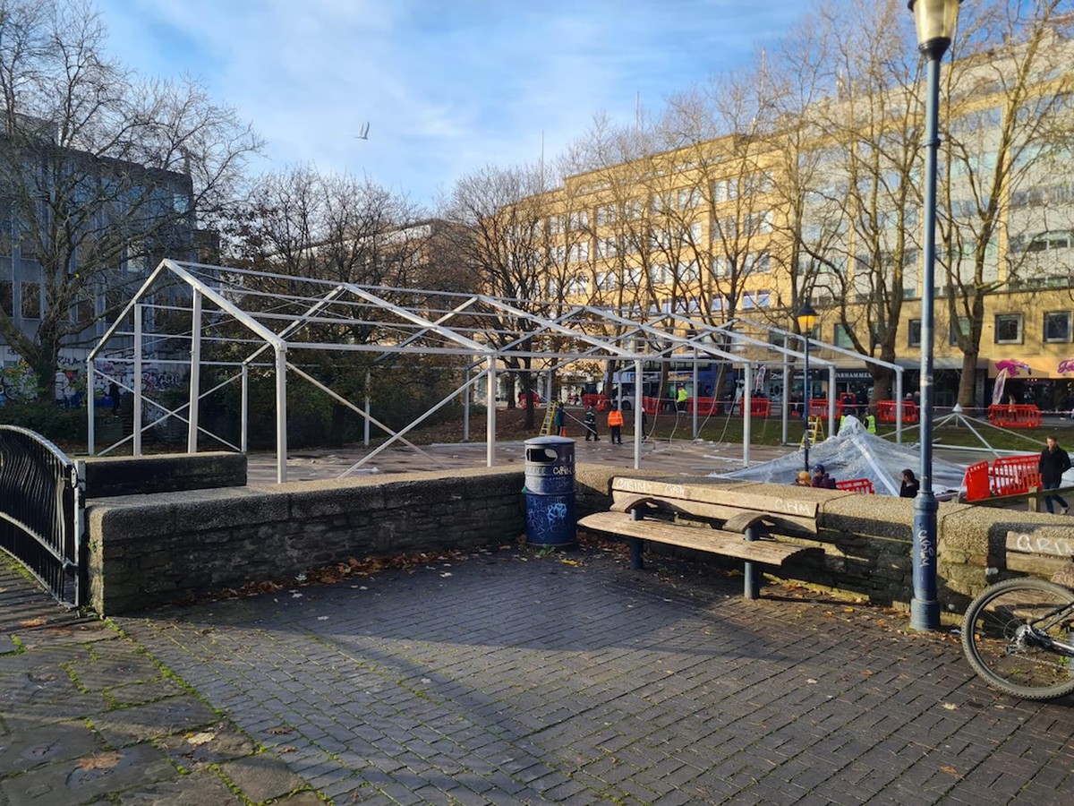 For sale is our 15m x 25m marquee which we only used two times. Once in December 24 and the for one month in December 2025.It comes with clear roof panels and clear triangles. No side walls