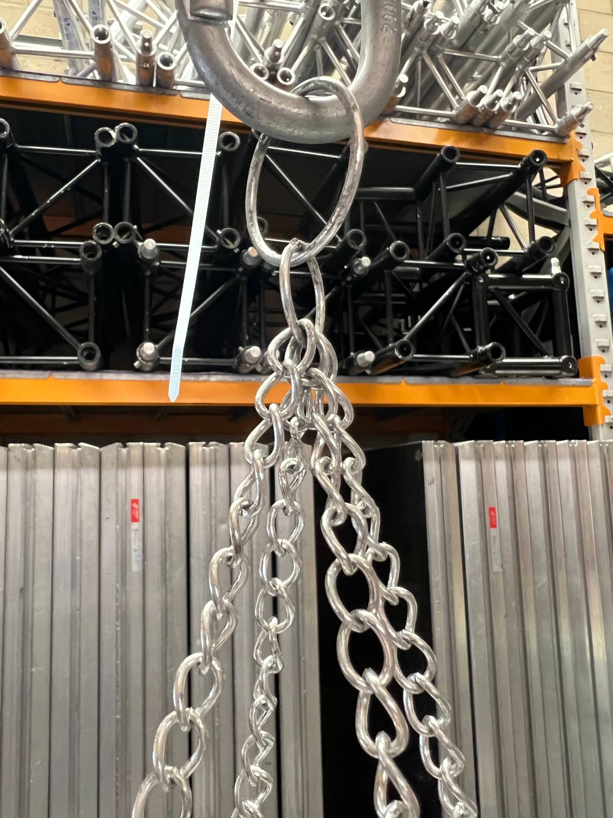 Silver Mirrored Square Chandeliers.Each chandelier measures 200cm (L) x 38cm (W) and features a layered design of reflective mirrored squares in varying sizes — 5cm², 3.5cm², and 2.5cm² — creating a sparkling, luxurious effect under lighting.