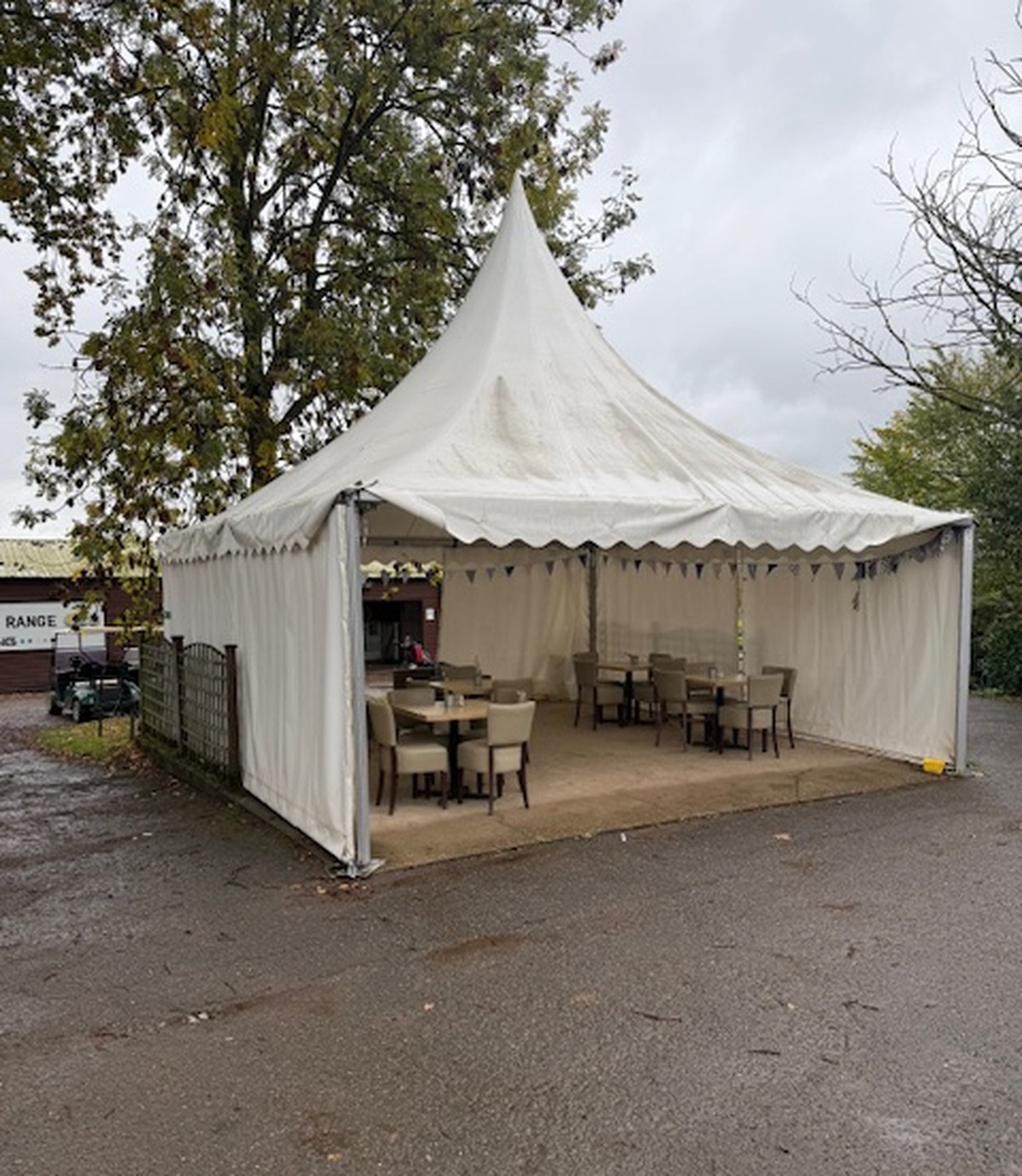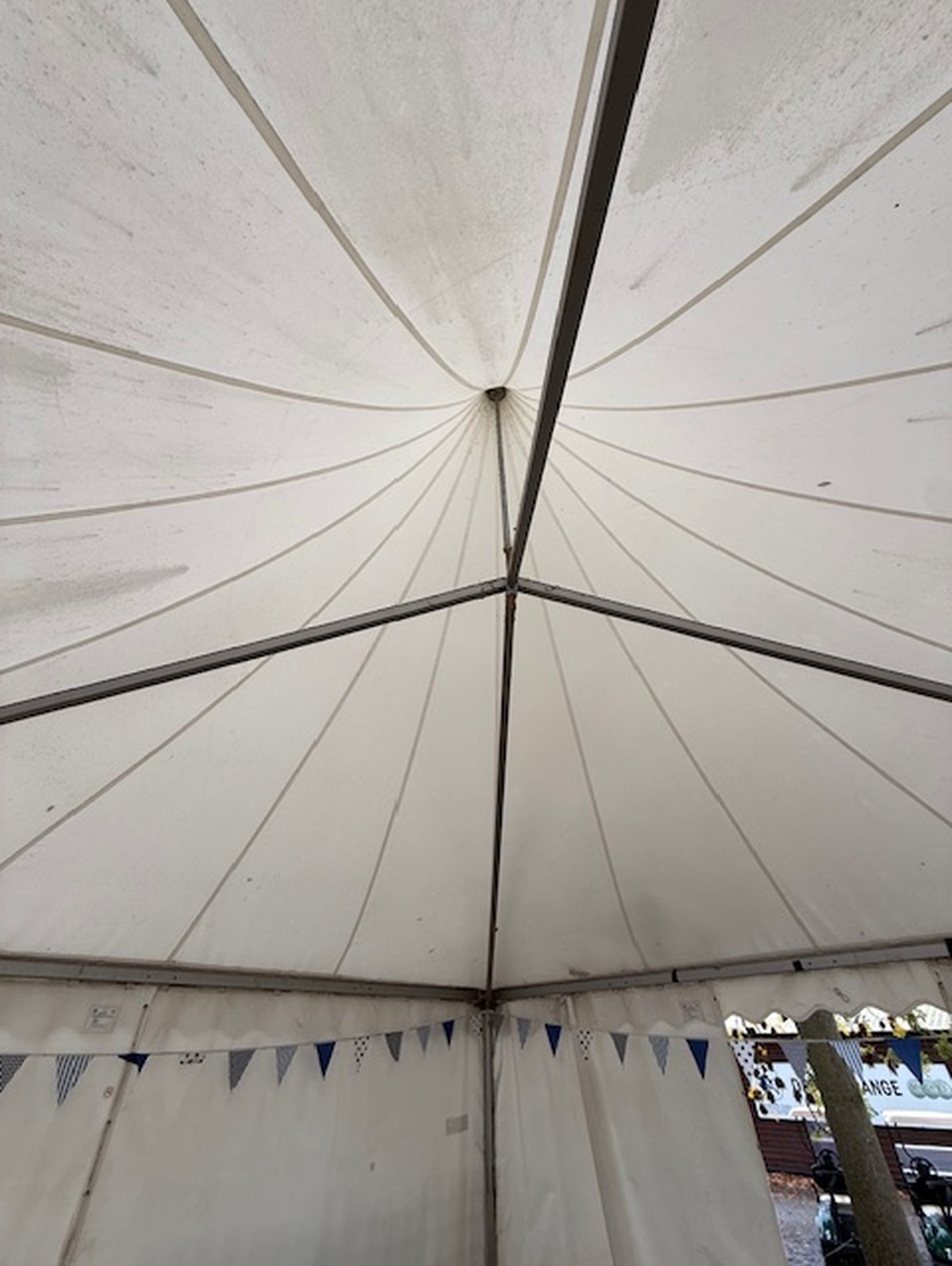 A quality Tectonics large white marquee with high roof top measuring approximately 5m x 5m square.Can have sides in place as shown in the images, or these can be opened or removed depending on preferences and weather conditions.