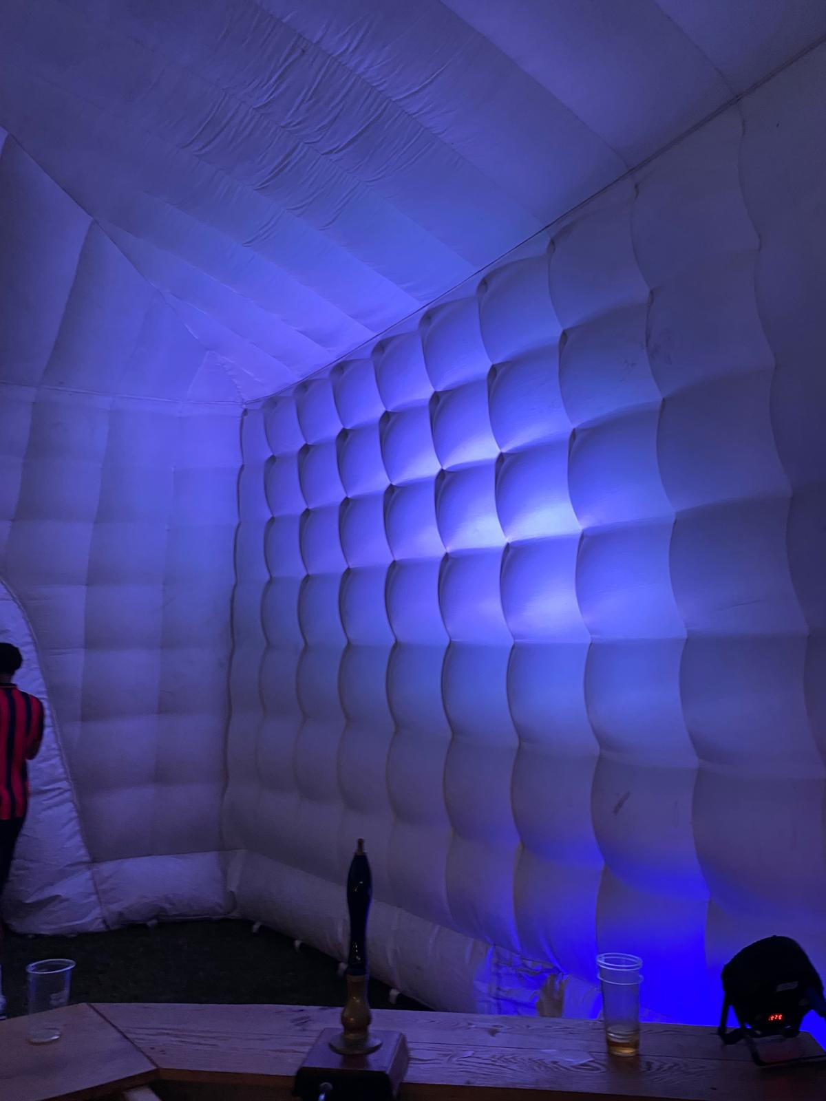8m x 8m large inflatable events cube. Enough space inside for seating and a bar. Fun and eye-catching.Cube, inflation pump, inflation fans, pegs, straps - everything needed to set up included.