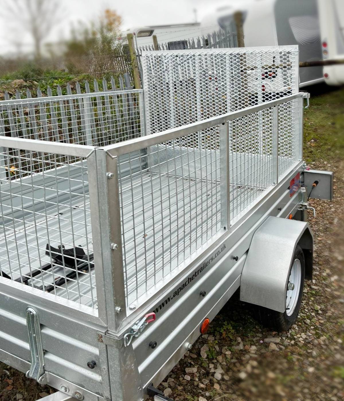 This trailer is only 6 months old and £400 cheaper than brand new retail from Apache.Cheaper with added extras and tonnes of hours invested in installing attachment rails (which should actually come with trailer anyway) so this job has been done for you.