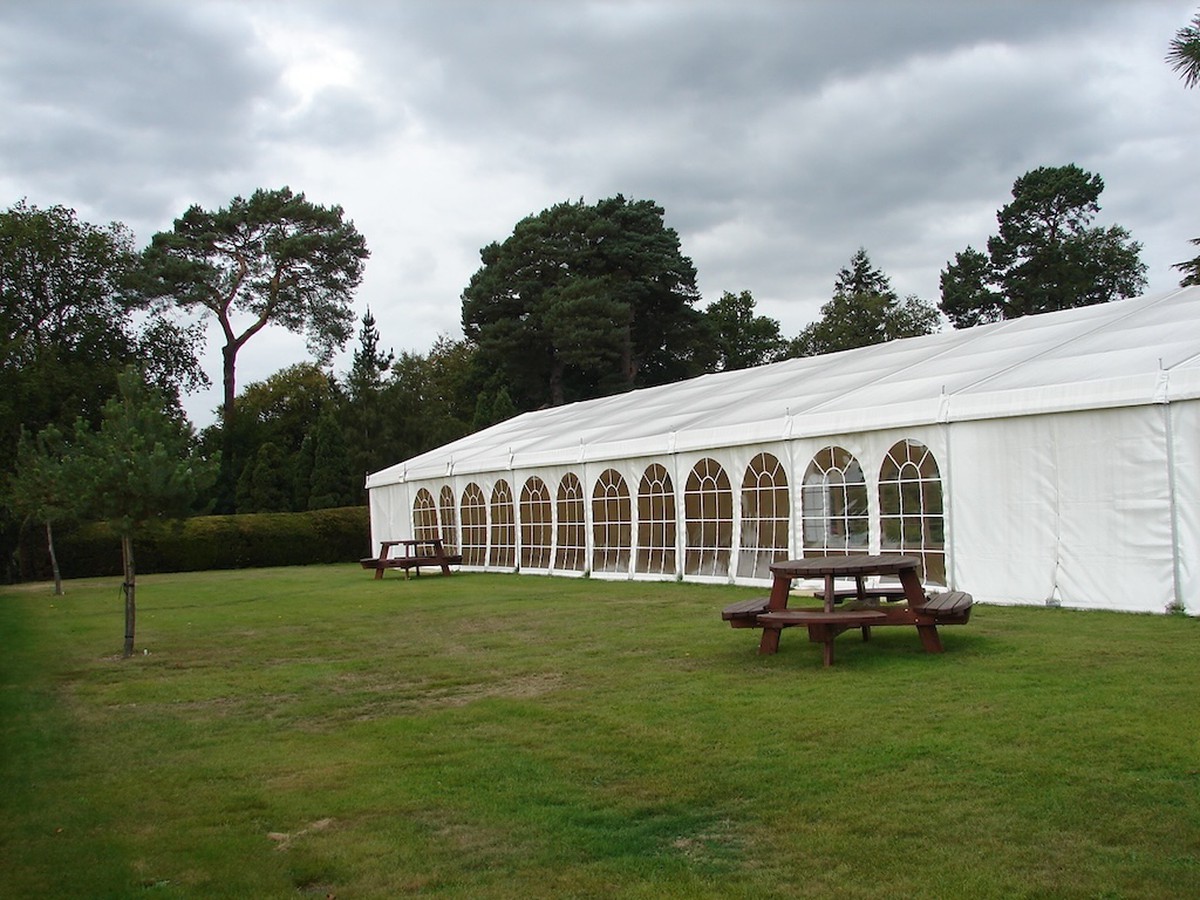 Large clearspan marquee with flooring, linings and bar – approx 252 sqm – buyer to dismantleWe are selling a large clearspan marquee currently installed at Burrows Lea Country House in Shere, Surrey.