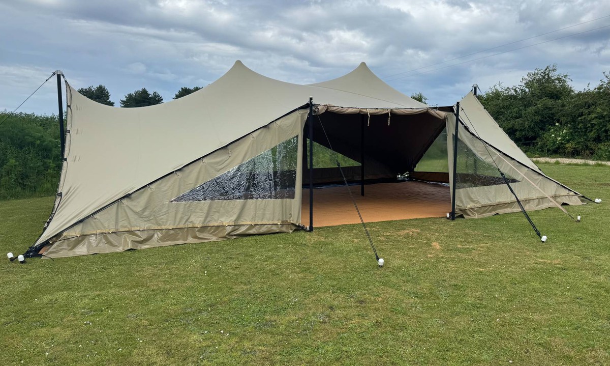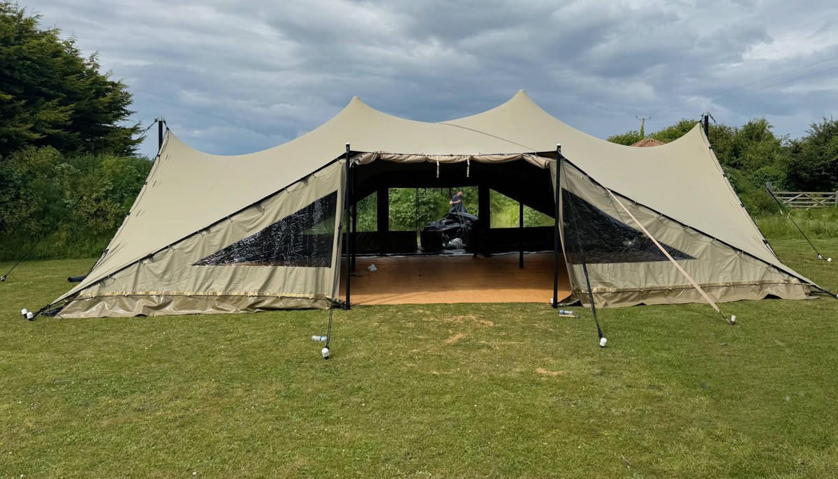 Amazing stretch tent purchased in summer 2024 from Tent Style UK.Excellent condition complete with transparent walls and doors.