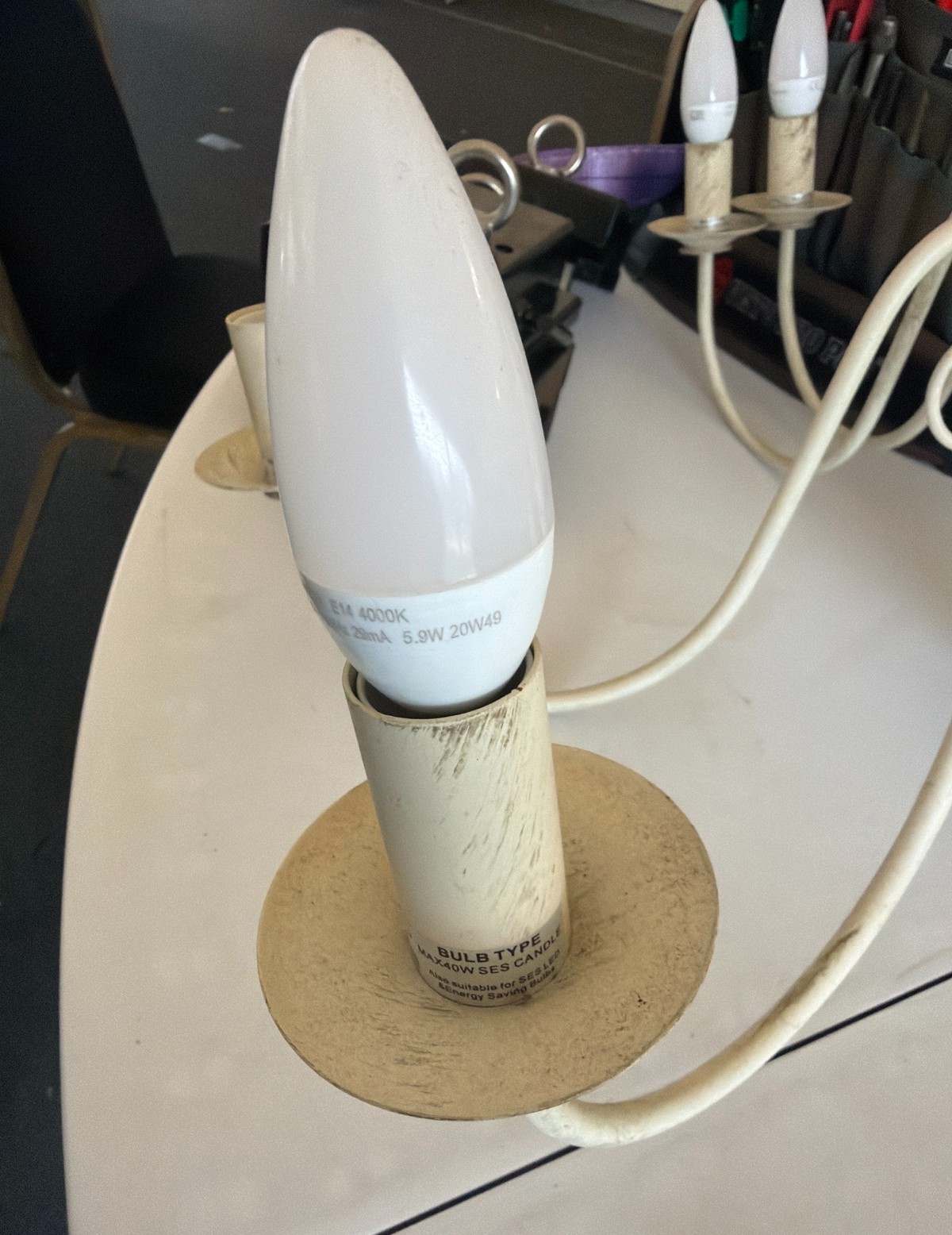 White chandeliers with bulbs (non dimmable).Click here for more products from this seller