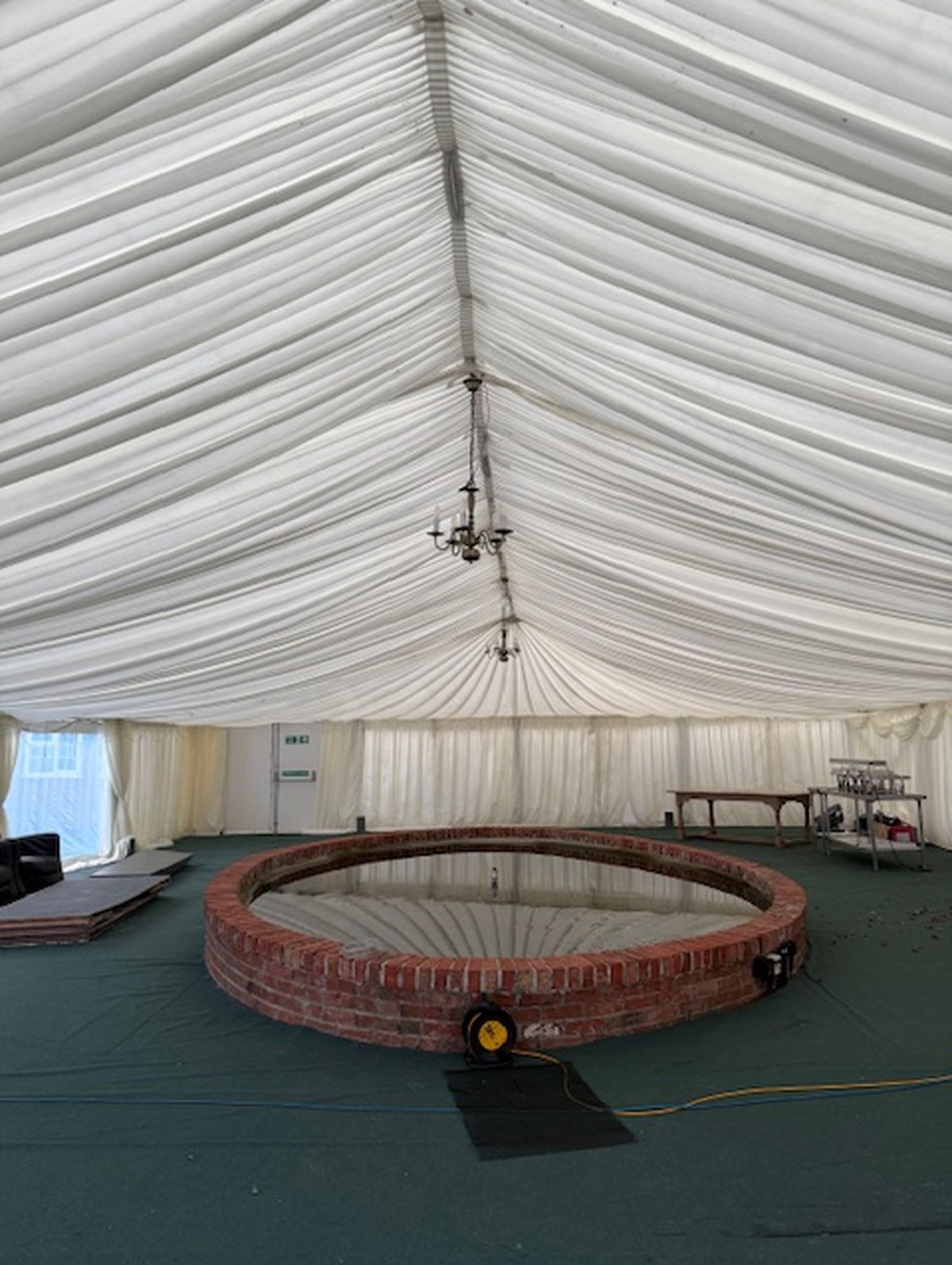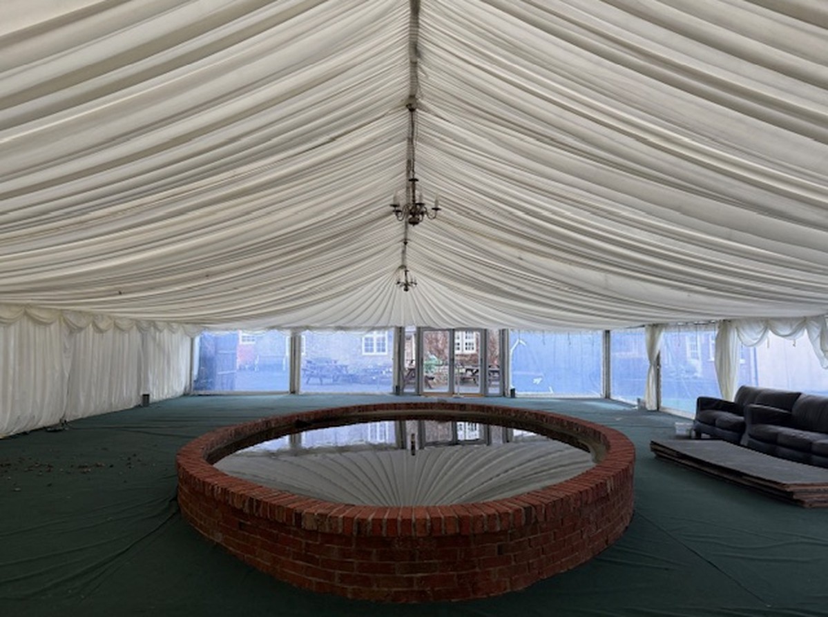 There was a fish pond in the middle of the tent meaning that there is a hole in the middle of the floor but this would require perhaps 4 to 6 new flooring sheets.