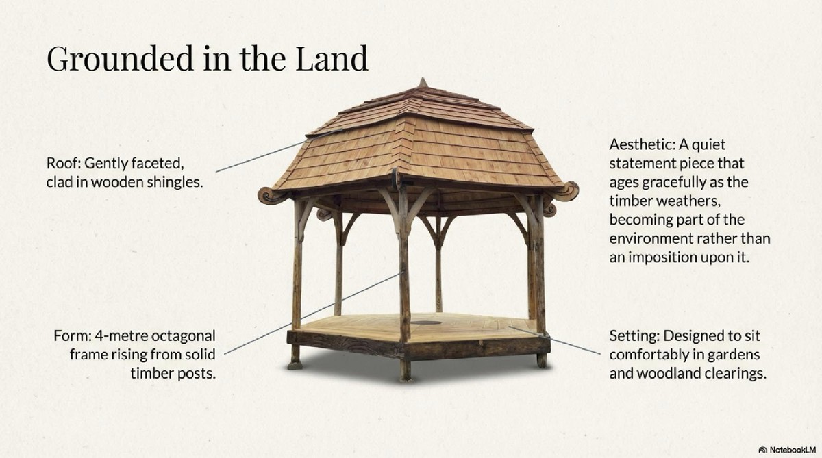 outdoors, anchoring the space while remaining open to the surroundings.