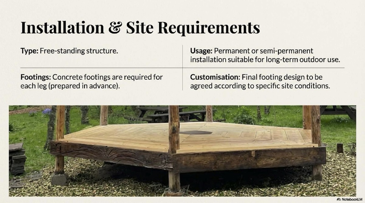 Bandstand - now flat packed, it's 4 meters in diameter.For a new installation it would require the floor frame timbers to be purchased and rebuilt however I managed to keep everything else ready for rebuild.