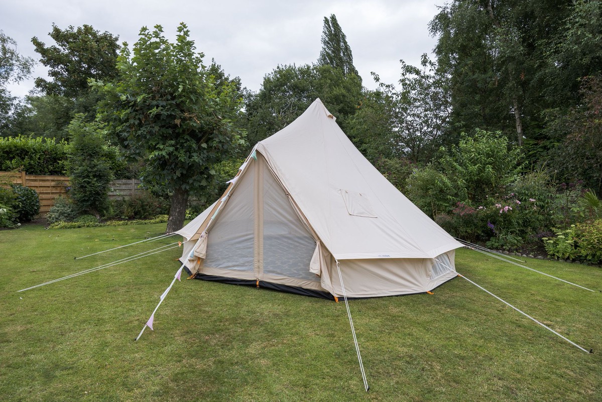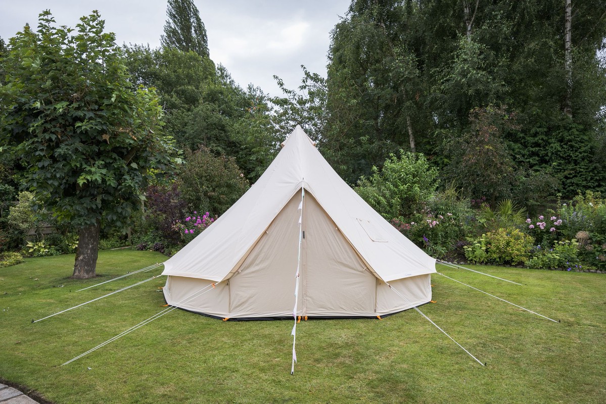 Ex hire 5 metre polycotton bell tent. Used for 3 summer seasons.Fabric clean and fit for purpose.