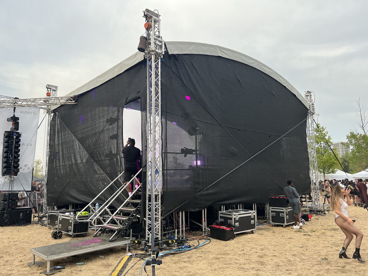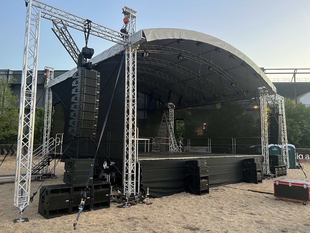 Naxpro Truss festival Stage roof with PA wings by LTT Group including and Stage deck, steps and hand rails for sale.A complete system as pictured.