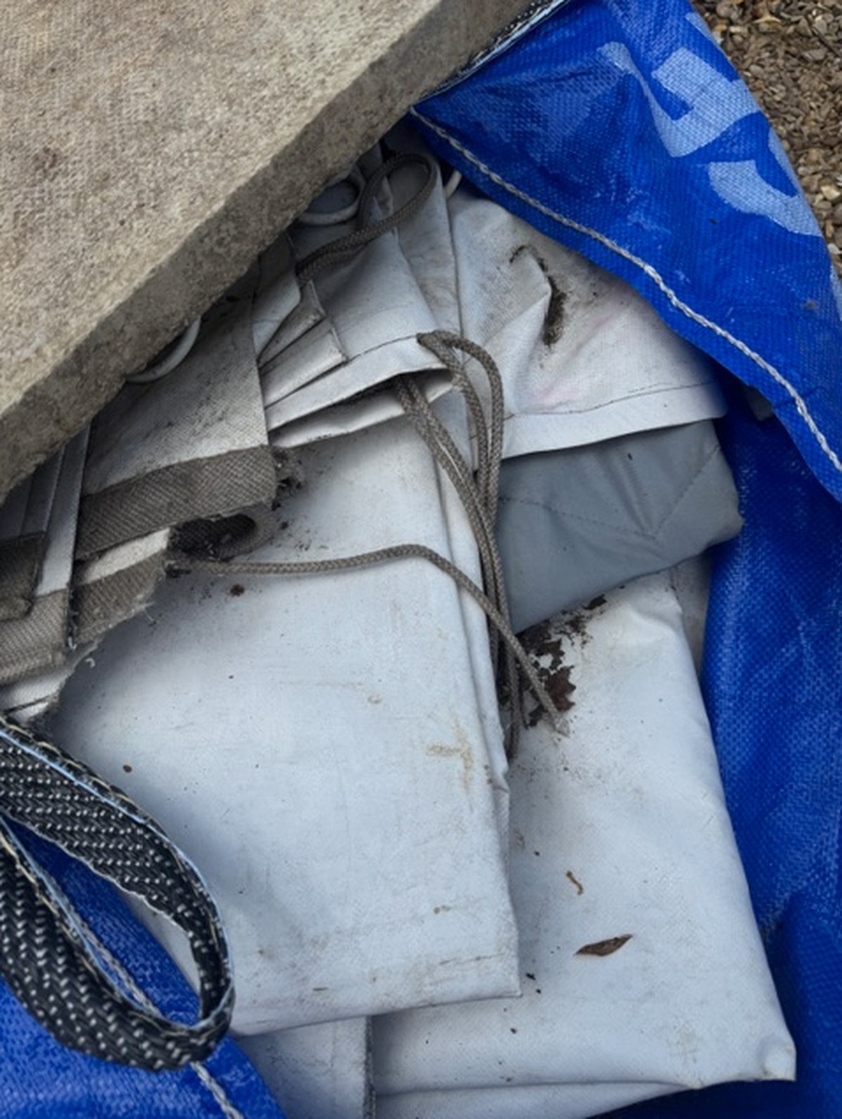 10 x 10 on a three metre legs, good for an entrance tent, walls need refurbishRoof